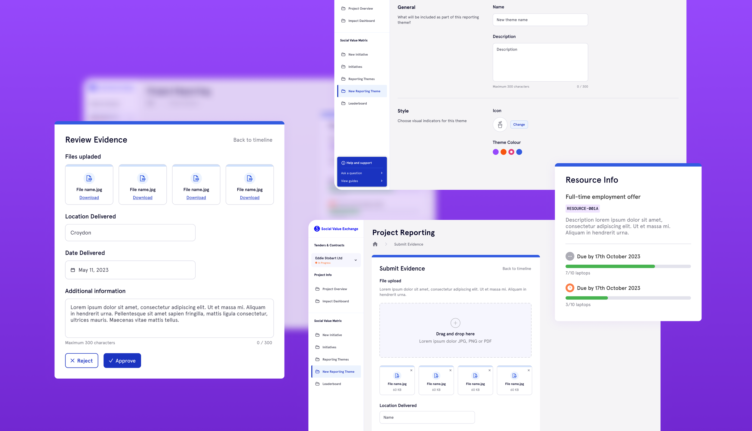 Councils and housing associations needed oversight across multiple contracts, suppliers, and community projects. Presenting that volume of information without overwhelming users required disciplined hierarchy, structured layouts, and strong visual clarity.