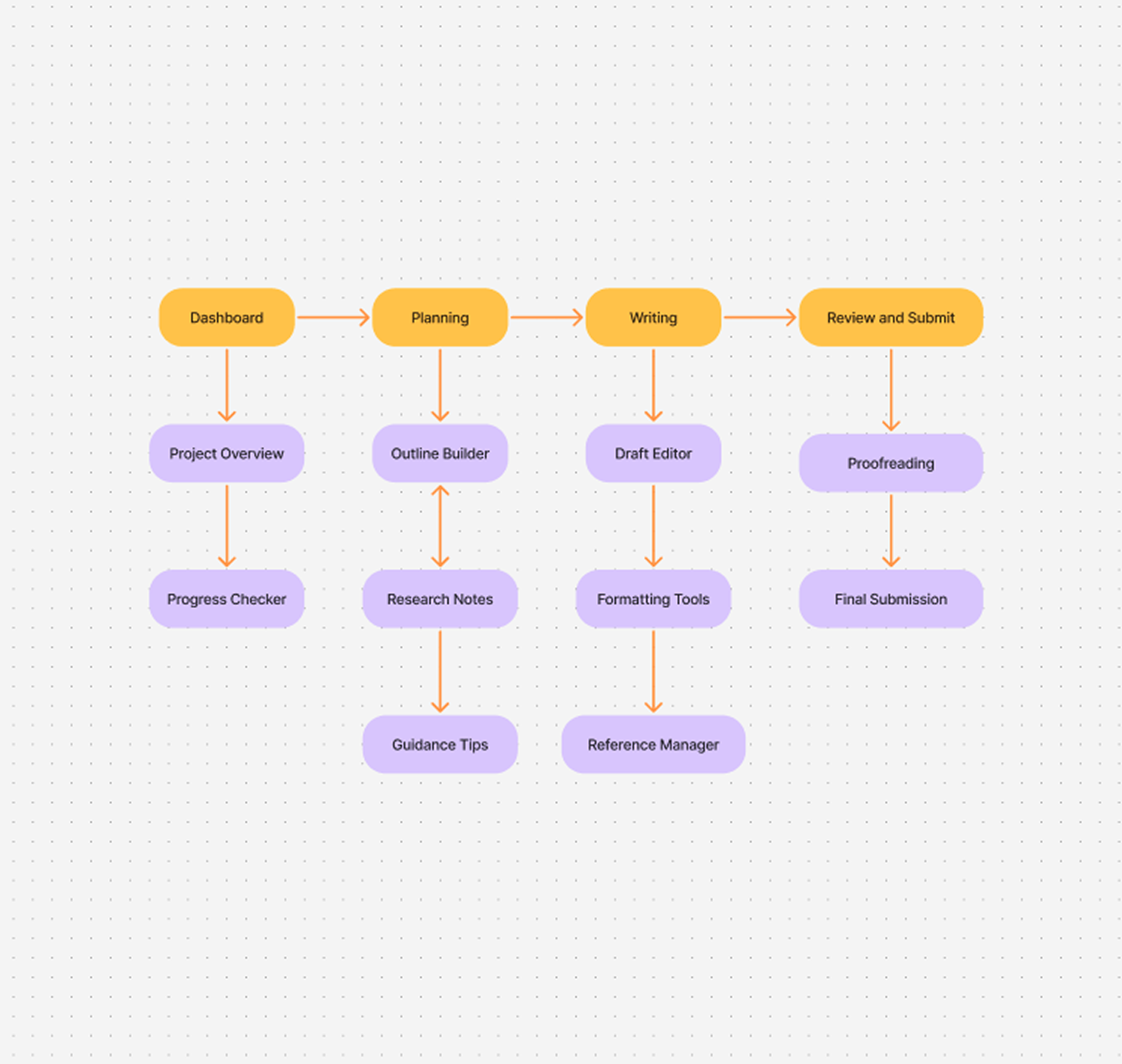 Designed for a diverse research community, from PhD students to senior academics, the platform addresses both the structural and emotional challenges of academic writing. The core design challenge lay in translating this framework into an intuitive, calm interface that supports long-form writing, structured planning, and sustained cognitive effort without overwhelming the user.